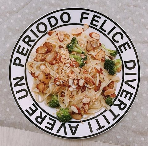마늘 브로콜리 버섯 볶고 다 된 파스타에 호두 뿌리기