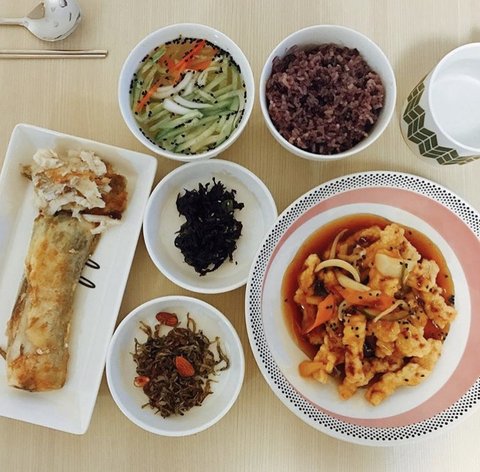 갈치튀김 오이냉국 파래무침 멸치볶음 탕수육