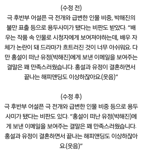 홍설, 유정보다는 김고은, 박해진 자체로 논란이 된 거였고 때문에 드라마가 흐트러진 건