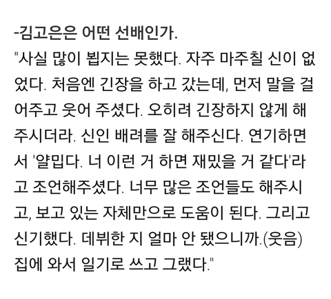 자신은 연기가 타고나는 것이라고 생각하는데 김고은이 연기적인 측면에서 진중하고 자신의 의견이 무엇인지 정확하게 알면서 표현하는 것을 보고 바로 느꼈다고도 했었궁!