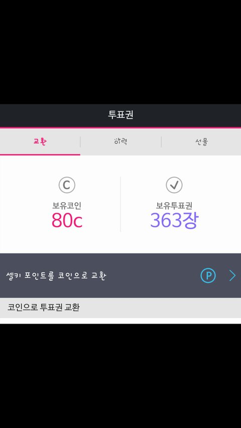 오늘도 투표권 나눔할게. 인피니트한테 투표했던거 이력에서 아래처럼 캡쳐해 인슾인거 인증해주고 닉넴,필요갯수 알려주면 보낼게. 어제는 10~30장씩 막 보냈는데 투표기간 며칠 안 남았으니까 본인들한테 남는거 버려야하니 버리지 않게 필요한만큼만 보낼테니까 필요갯수 정확히 알려줘~오늘도 많이 올려보자!! 넘 많이 격차 좁혀졌어.투표는 화요일까지야