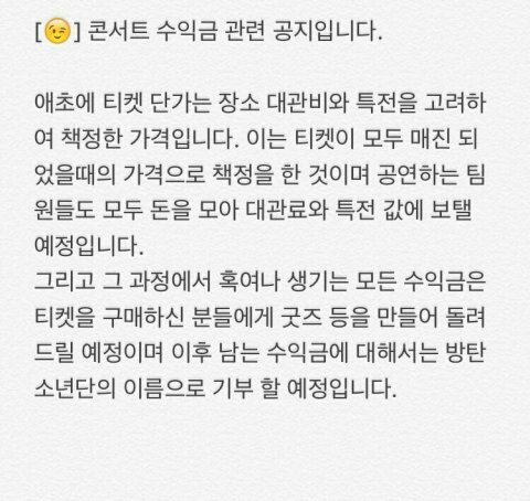 3.수입금은 대관료와 예매자 굿즈 그리고 방탄이름으로 기부한다고 함