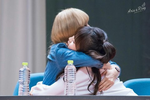 여기서 포인트는 멤버언니한테 안겨있는 모습이 아닌 멤버언니 팔에 눌린 볼살임. 이게 바로 귀여움인가요 슨상님?