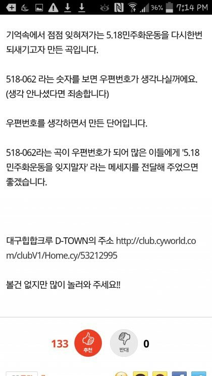 이번글로 우리 모두가 5.18일 민주화운동을 기억하고 되새김질할수있는 기회가 됬으면 좋겠다.
