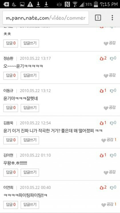 그리고 댓글들...ㅋㅋㅋㅋㅋ슈가가 지인들과 친구들한테 이 글 링크를 문자로 보내서 그런지 댓글들이 다 친구들의 화이팅 넘치는 메세지들..