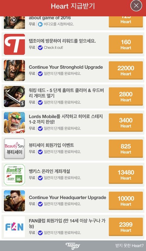 웅녀들 ㅊㅇㄷ에서 메뉴 제일 밑에 보면 설정이 있는데 설정에 들어가서 언어 설정을 영어나 중국어등 다른 나라로 바꾸고 무료 하트 충전에 들어가면 무료하트 충전하는거 되게 많이 쏟아져 나와 먼저 한국어꺼 무료하트 충전 다 하고 나서 할거 없을때 한번 바꿔서 해봐 물론 카드가입이나 어떤 사이트 회원가입등 쓸데 없는 것도 많긴한데 게임 같은거는 몇단계 클리어하면 하트 많이 주고 그런거 있으니까 관심있는 웅녀들은 한번 언어설정 바꿔보길 바라 그런데 언어설정을 수시로 계속 바꿔대면 무료하트 충전이 안뜨니까 한국어꺼 다 쓰고나서 바꿔 보는걸 추천해 (그런데 나도 바꾸기만 하고 아직 몇개 제대로 안해봤어 ㅠㅠㅠㅠ) 그럼 오늘밤도 민석이를 위해 다같이 힘내자 슈이팅 !!
