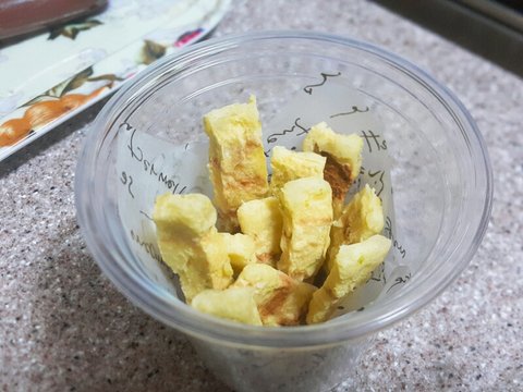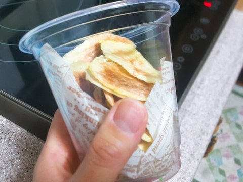 산책 후, 간식으로 감자칩이랑 감자스틱을