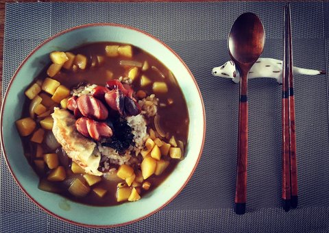 오키나와서 고체카레 쓸어와 온갖냉장고 채소들 넣고 만들어먹죠.