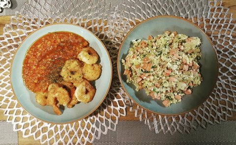 소분해둔 새우 해동하고 양념하고 튀기고 소스만들고