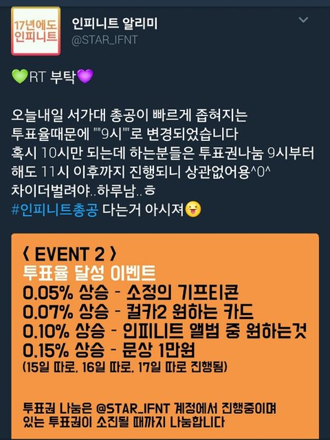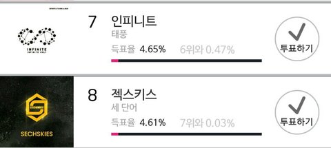 지금 차이가 너무 빠르게 좁혀지고있고 벌써 0.03까지 왔다.. 그래서 총공시간 "9시"부터로 변경되었으니까 9시부터 참여하자!!! 나지금 뒤집힐까봐 저녁도 못먹고 투표중임 지금부터 할수있는사람들은 지금부터 투표부탁해ㅠ