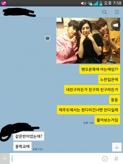 친구 하나가 제주도 출신이라 혹시 아냐고 물어봤더니 같은반이었었다니ㅋㅋㅋㅋㅋㅋ세상 너무 좁아서 놀랍고 제주도는 한다리 건너면 다 아는사이라는게 너무 실감남 중학교때도 지금이랑 다를거없었다고 그러더라고 친한사이는 아니었대