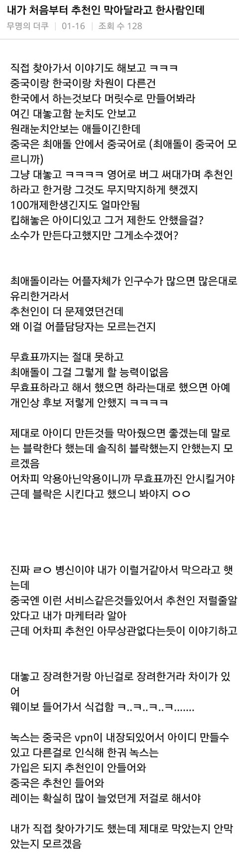 이를 막기위해 추천인 보상제도를 없앴으며