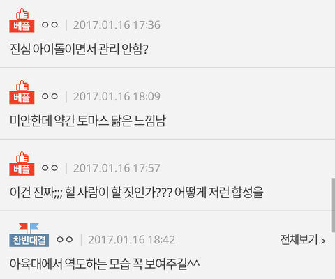 판 도대체 왜이러는거야? 남자 아이돌들 글 이라고 악플 없는건 아닌데 여돌 글에 댓글 너무심하잖아;
