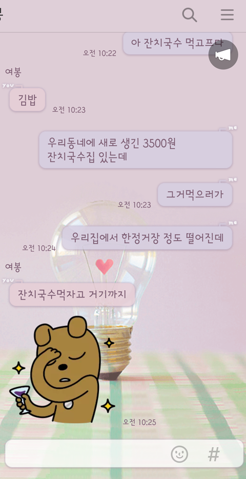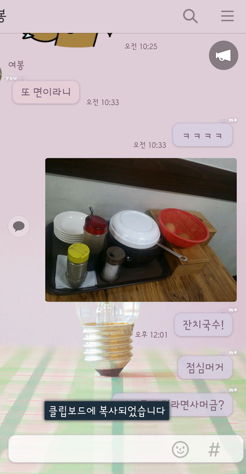 남친한테 잔치국수 먹으러 왔다고 카톡보내고 있으니