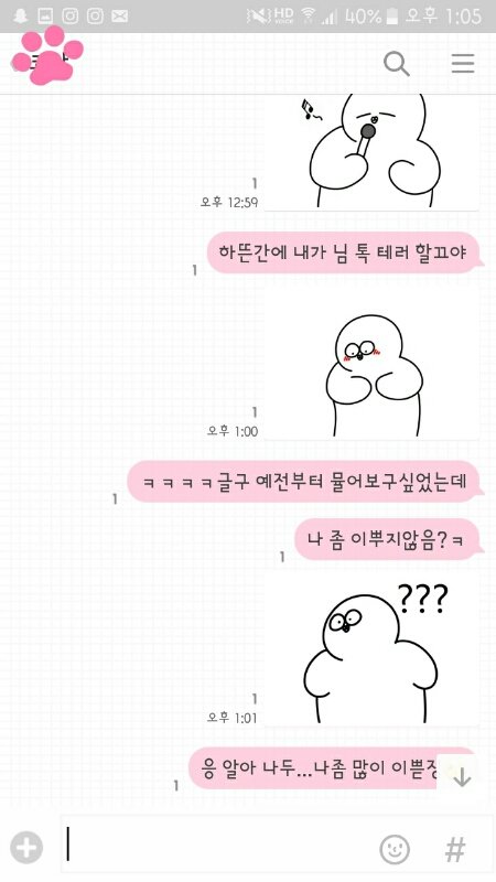 하....언니톡에 몰래 들어가 봤더니... 요즘 많이 외로운가봐요... 자기자신한테 막 톡보내고 혼자 ㅈㄹ하고..아휴..ㅉㅉ