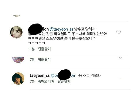 다들 사이다네 하는데 본인은 태연팬이라 그런지 속시원하기도 하지만 오히려 태연이 너무 안쓰러움 그냥 이모티콘과 거울봐라 라는 저 단순한 한마디를 달기전에 얼마나 많은 빻은 욕을 들어쳐먹고 참아왔을지 가늠할수도 없음. 심지어 저것도 참다참다 한마디한걸로밖에 안보이고 아무렇지 않은듯 썻겠지만 저 _같은 말들을 본인 눈으로 다 확인하고 얼마나 속상하고 답답하고 화났을까. 예전에도 비슷한 경우가 있었는데 그때는 심지어 태연이 악플러한테 여긴 나뿐아니라 팬들도 같이 보는 공간이니 나쁜말은 자제해달라고 부탁까지 했었음. 이런애가 본인이 나서서 저정도로 말을 했던거면 도대체 태연이 무슨 마음이었을지 상상하기도 싫을 정도임. 태연이 연예인이라고 생판 남에게 저런 근본없는 비난을 들을 이유는 전혀 없고. 이걸 계속 퍼나르는것도 좀 그럼. 왜냐면 벌써 벌레들이 기어나와서 _빻은 저 댓글을 보고 맞는말 했는데 왜그러냐며 태연 말 조카 심하게 한다며 역으로 태연이 까이니까 그냥 하루빨리 고소진행 해줬으면 좋겠네. 처음 고소선언했을땐 부들거리면서 생지랄발광이더니 고소진행이 안되는것처럼 보이니까 이제 캡쳐한다고 해봤자 오히려 비꼼당하기만 하고. 하여튼 태연이도 그렇고 세상모든 연예인들 저런 빻은댓글에 당당한 태도로 대처하기 배워야함