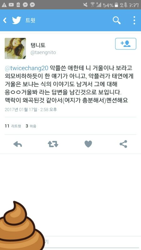 이거였음. 응ㅇㅇ 거울봐 했다고 욕하는 사람들 많은데 팩트좀 알고ㅋ 널리 좀 퍼트려주세요