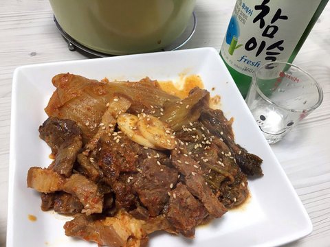 소갈비살과 돼지고기 함께 넣은 묵은지김치찜!
