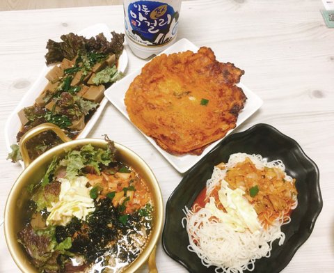 쩔수없이 묵밥에 도토리묵무침에 비빔국수랑 김치전!