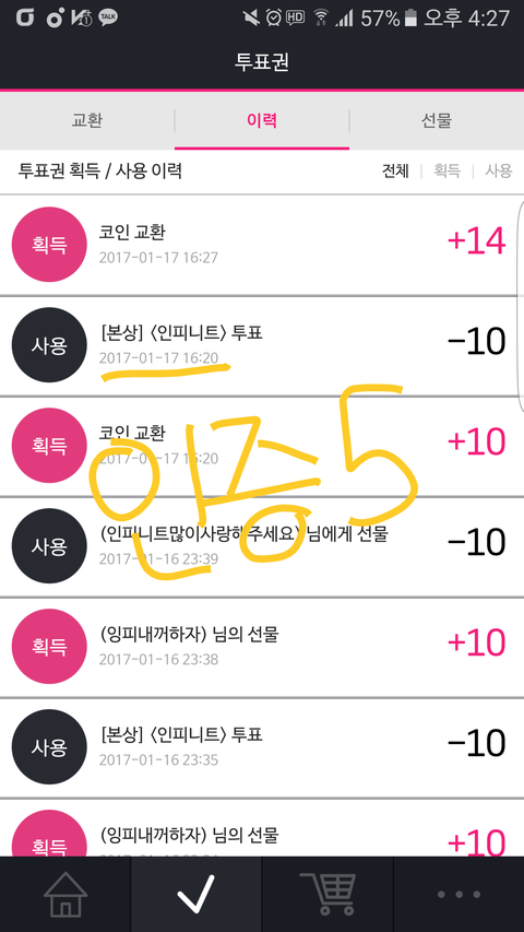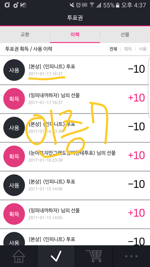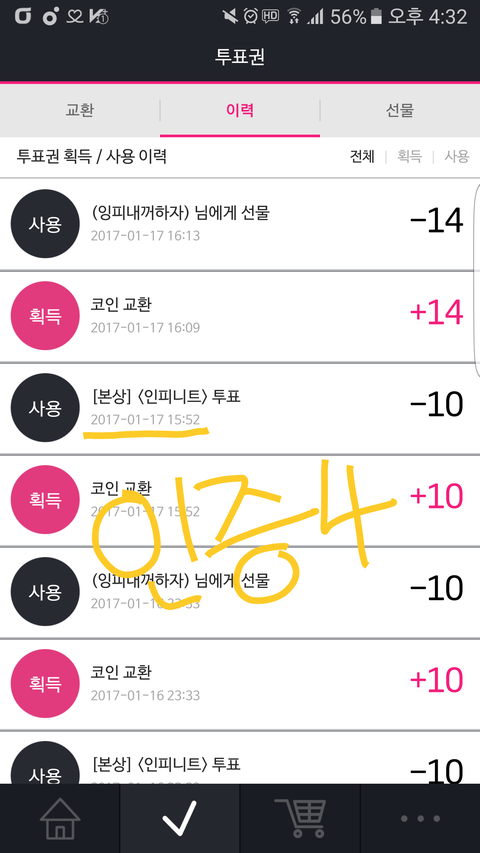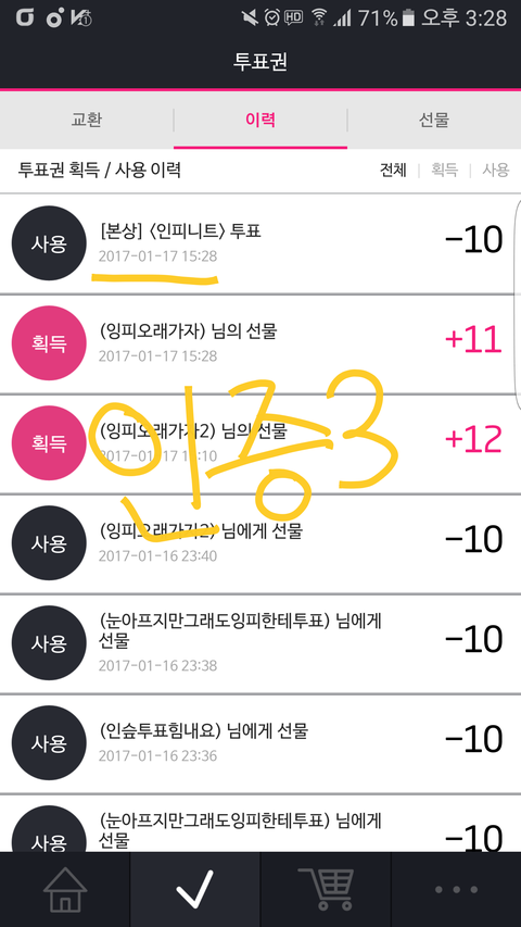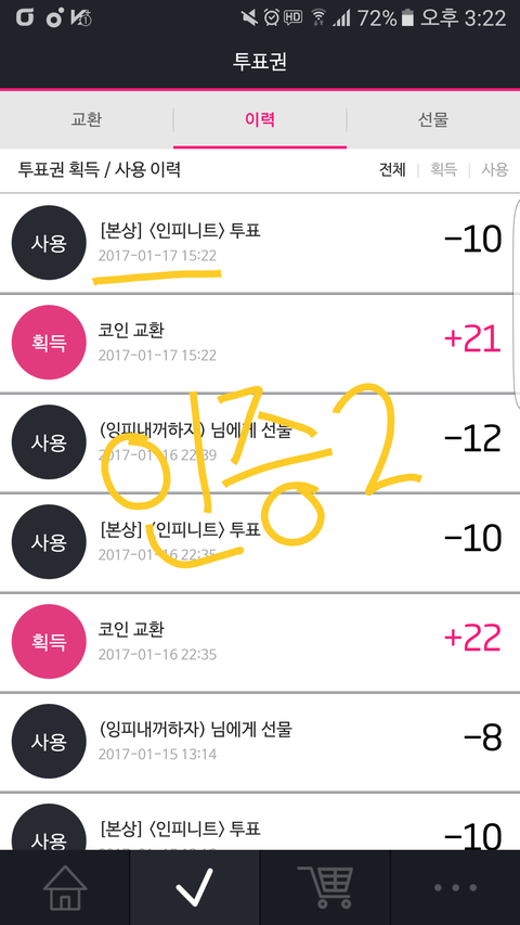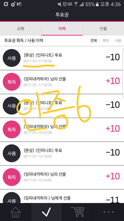 총공시간은 아니지만 100장 투표인증