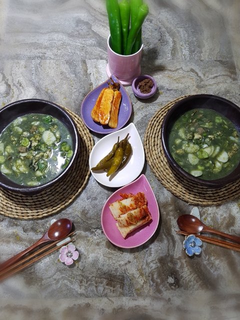 2017년 1월 1일 매생이 쇠고기,굴 떡국 해먹었어요 신랑이 대파를좋아해서 넣었는데 좀 지져분해보이네요 ㅋ 그래도 매생이가 들어가서 맛있었어요^^ 이상 특별할껀 없지만 그래도 정성들여 차려본 밥상입니다. 다들 늘 행복하시고 2017년엔 대박나는 한해가 되시길 기원합니다^^