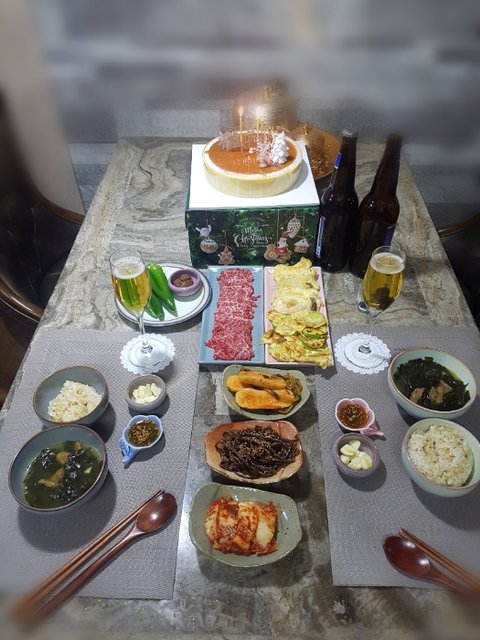 두번째 맞는 신랑생일상 처음 생일상보다 좀 성의없어 보이네요 ㅋㅋ