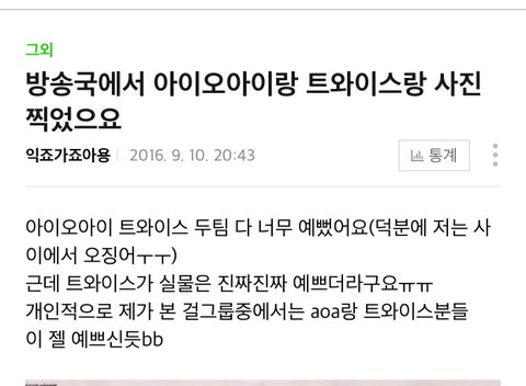 1. 트와이스 기자 쇼케이스에서 마지막에 꽃받침 할때 거의 우엌 하는 감탄사가 터짐. 냉담하기까지 한 기자 쇼케이스에서 아주 흔치 않은 일.