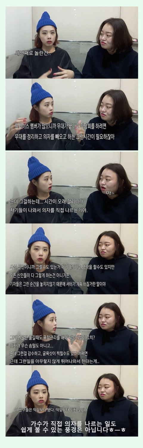 치어업 작곡가님 감사합니다ㅋㅋ 의자도 직접 나르는 트와이스 인성 터졌네 연예부기자분들한테 잘보여서 나쁠건 한개도 없음 트와이스 트와이스 잘하자