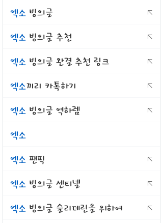 엑소는 연검에 빙의글이 너무많아서 위에 초록창 부분 짤림...엑소 방탄 세븐틴이 네이버에 자기그룹 쳐보다가 이거보면 기분이 어떻겠냐 진짜 정화해야할듯