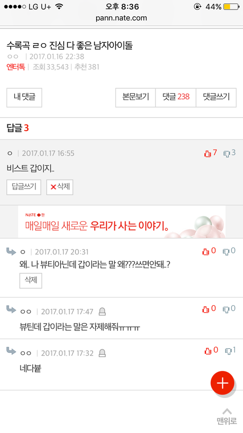 팬인증하라고 지랄해...? 네다븉 이러고 ㅅㅂ 나진짜 뷰티 아니고 그냥 비스트 잘생기고 수록곡 다 좋아서 댓글에 그냥 비스트가 짱이야 뭐 갠적으로 나는 비스트가 제일 좋다구 이런거 달면 왜나한테 자꼬 아오 진짜 답답하네 내가 니네가 팬인증 하라그러면 해야되냐?????