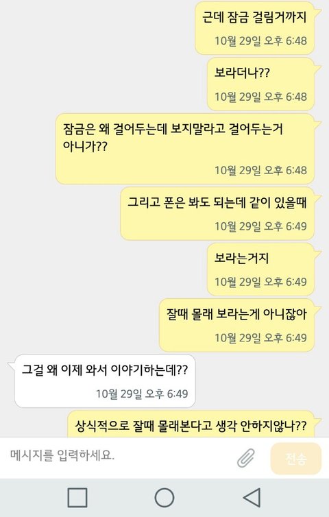 니가 양산부산대병원에서 10월~11월 실습하는동안 동거할때 내가 자는동안 내폰 비밀번호까지 다 뚫고 들어가서 훔쳐봤지 소름돋는다...