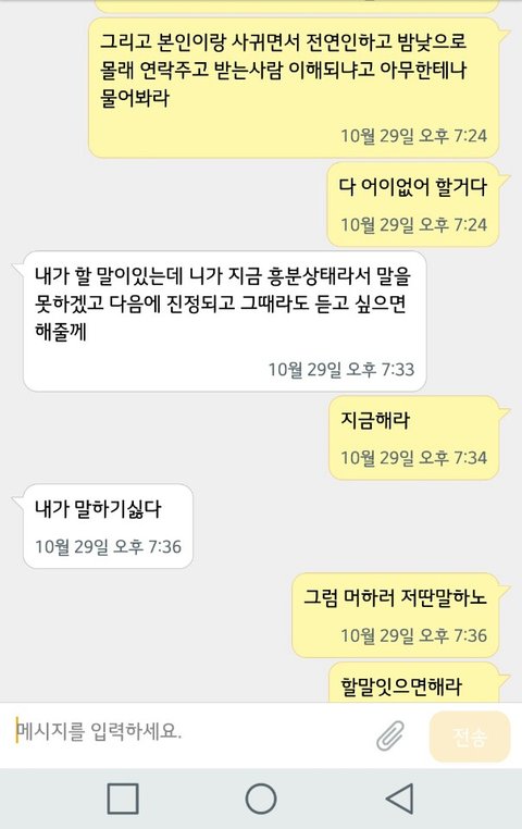 여수에 놀러갔을때도 난 옆에서 너한테 더 좋은거 보여주겠다고 열심히 운전하는데 너는 남사친이랑 야한사진 주고 받으면서 놀더라 난 안중에도 없고...
