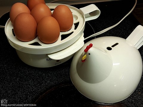 하지만 달걀 삶는 기계가 암탉이라니, 생각해보면 후라이드 치킨 들고 웃는 닭 마스코트만큼이나 엽기적이긴 합니다.