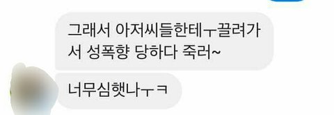 근데 그때 내가 미쳤었지 그 소리를 듣고도 못잊은 내가..그래 나 너 좋아했었어 근데 내가 아직도 니가 했던말 생각하면 내가 왜 그런 쓰레기를 좋아했는지 모르겠다.뚫린 입이라고 막 뱉지마.패드립도 아주 잘들었어 너 덕분에.내가 친구들이 니가 보낸 말 보고 쓰레기라고 했는데 내가 초등학교때 친했던 정이 있어서 포장한다고 애 많이 먹었는데 내가 왜 그딴짓 한 줄 모르겠다. 그리고 뭐 서강준 얼굴 개빻았고 니가 서강준보다 더 잘생겼다고?