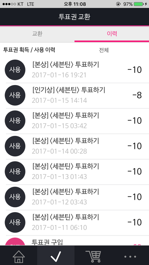 꾸준히 투표했었고 결제못한날은 순발력갬이라도 해서 그거라도 투표했었어 돈안내도 되고 몇분만 투자 하면되는거야 아니면 투표권 나눔 받고서라도 투표하자 우리 애들은 우리위해서 밤낮없이 매일 새로운모습 보여준다고 고생하는ㄴ데 우린 투표가 몸을 상하게하니 한시간이 드니....속상해서그래 ㅠㅠㅠㅠ 투표꼭하줘 으오늘이 마지막이니까 ...