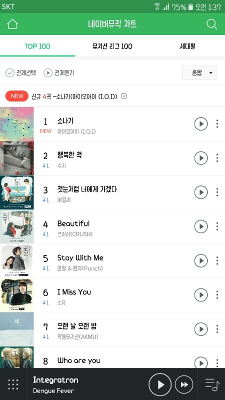 반영은 안크지만 네입버 뮤직도 1위 달리는중이다!!