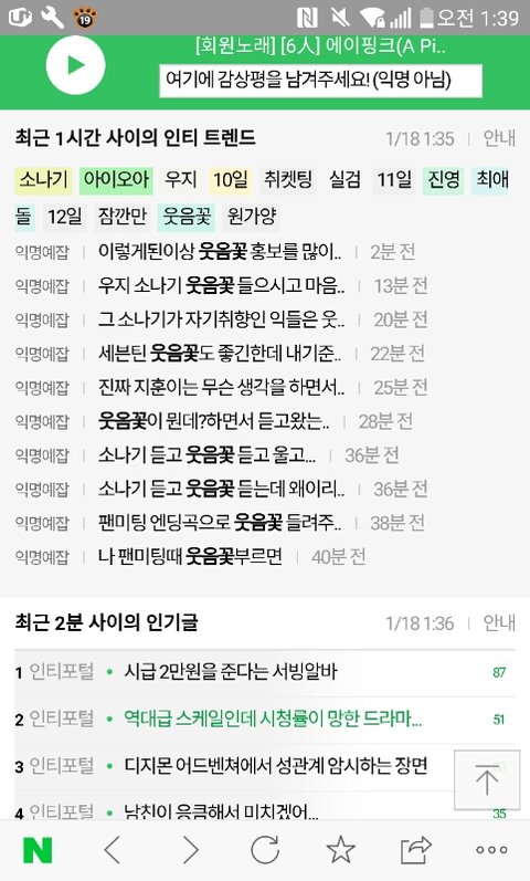 ㅇㅌ캐럿들이 웃음꽃홍보 많이 하나봐ㅠㅠㅠㅠ 이기회에 셉틴노래도 많이 알려졌으면 좋겠담