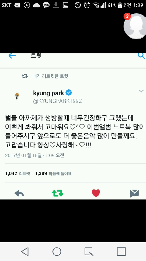 우리 솔직히 너무 대중만 믿고 스밍안하는거 아니여..? 진입순위 11위 22위야...입스밍하지말자 경오빠가 우리에게 좋은노래로 보답할려고 왔는데 이게 뭐야..벌들 다 어디갔어? 솔직히 우리 이정도면 미안해서라도 스밍돌려야하는거 아니야? 오빠 좋아요! 해놓고 입스밍에 불다야..? 아니...우리 제발 스밍하자 솔직히 이렇게 보면 우리는 세시 욕할거도 없어....우리가 보이콧해서 이제 일조금 하는데 이게뭐야...우리가 제대로 보여줘야 뭘하든 하지... 팬미팅 이번에 가는분들이 한번씩만 들어도 내려가진 않았을거 같다