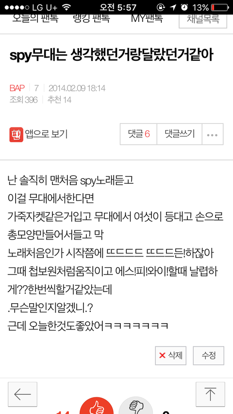 저때 팬톡에서 무시 안당할라거 고딩인척 하고 그랫었던거 가틈 ㅠ그래봤자 똑같은 급식충인데