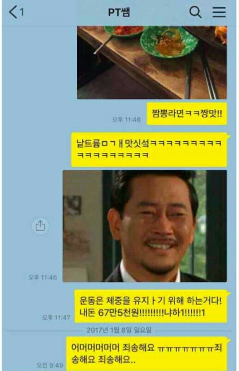 톡보내는 사람이 헬스장다녀서 식단관리증인데 술취해서 pt쌤한테 버낸거