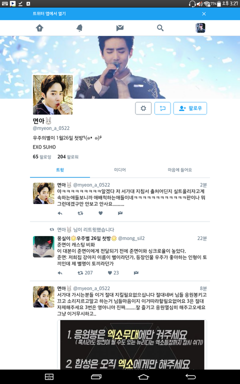 쟤 트윗 들어가서 최근꺼 읽어보삼