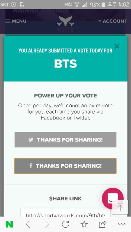 보니까 짹이랑 얼굴책 공유하면 한표씩 더 투펴 반영되더라 (둘 다 공유하면 두번째 짤 처럼 뜸)