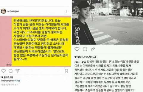 이딴식으로 악플을 올렸음 그래서 사과문을 올렸는데...