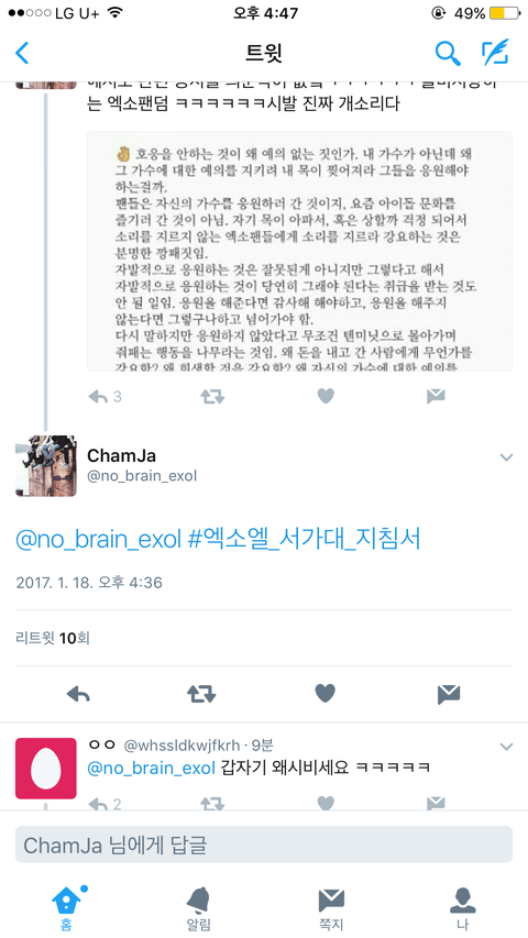 이걸 왜 알티해 이년 아랫동네 팬인데 우리 비꼬는 거야 병신들아