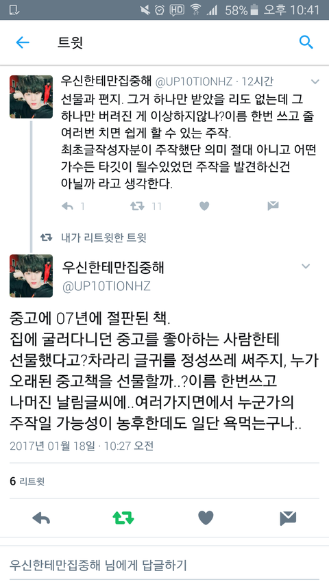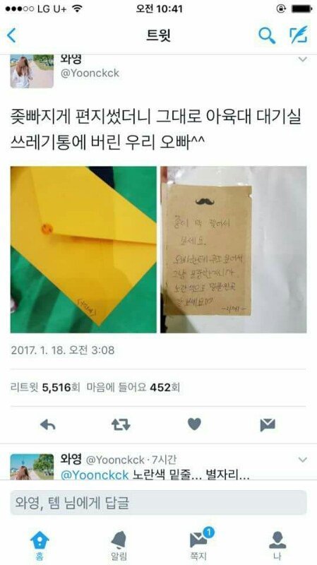 팬이 편지쓰면 그 팬한테 나중에 편지내용