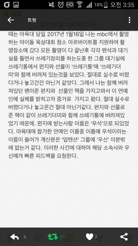 yoonckck라는 남자가 자기는 아육대 청소 알바라면서