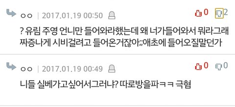 ㅋㅋㅋㅋㅋㅋㅋㅋㅋ주영아 유림아~ 판 물흐리지말고 카스나 라인가서 지1랄을 하든 말든 해ㅎㅎ