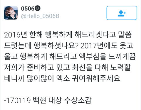 대상축하해ㅜㅜ 백현수상소감ㅠㅠ