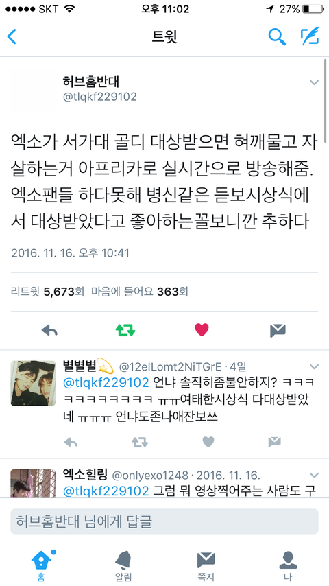 야 헙홈반대 이새끼 왜 안죽음?