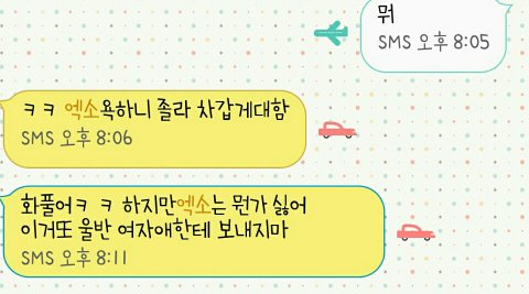 여자애한테 보내지 말라는게 반에 쟤 천적 하나 있어서 그럼 ㅋㅋㅋㅋㅋㅋㅋ 걔 엑셀이거든